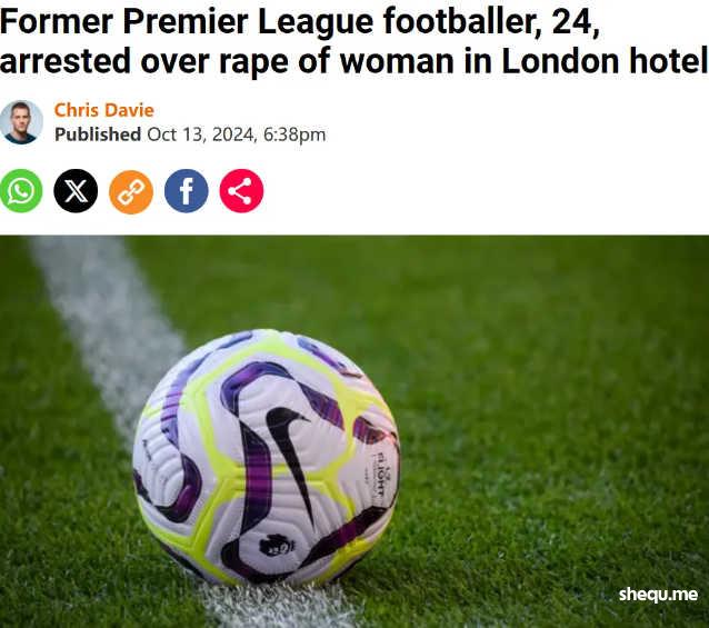 花边旗舰报《太阳报》最新猛料:一名24岁的前英超球星涉嫌在伦敦威斯敏斯特的顶级酒店强奸一名年轻女子被逮捕。