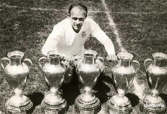 迪斯蒂法诺在足球史上有着重要地位。1956 - 1960 年皇马欧冠五连冠,他功不可没,期间为俱乐部打入 308 球。凭借对球队和足球运动的卓越贡献,他在与克鲁伊夫、查尔顿、贝肯鲍尔等巨星的竞争中,夺得超级金球奖。